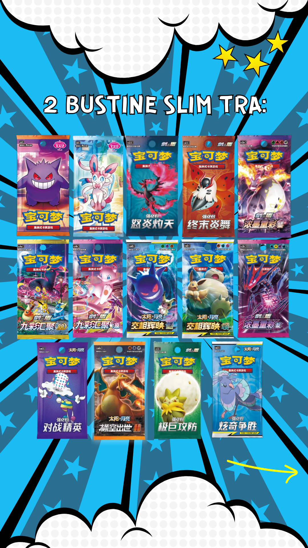 - 1 Bustina JUMBO tra: CSV6, CSV5, CSV4, CSV3, CSV2, CSV1, 151 Surprise, 151 Hope, 151 Journey, 151 Gathering, CS6A, CS6B, CS5A, CS4B, CS3A, CS3B, CS2A, CS1A, CSM1A, CSM1B, CSM1C, CSM2A, CSM2B, CSM2C.